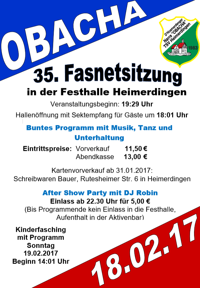 03.02.18 Fasnetsitzung Obacha, Festhalle Heimerdingen